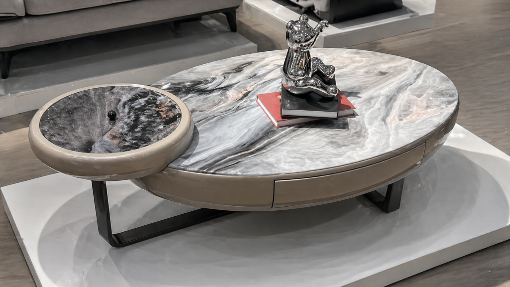 Elevate your living environment with the Nebula Pebble Coffee Table, a design that blurs the line between functional furniture and gallery-level sculpture. Designed for the modern tastemaker, this table replaces standard surfaces with a breathtaking display of movement and organic contrast.