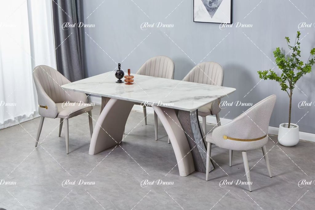 A WHIITE CHANEL DINING TABLE MADE WITH EXCELLENT CRAFTMANSHIP.